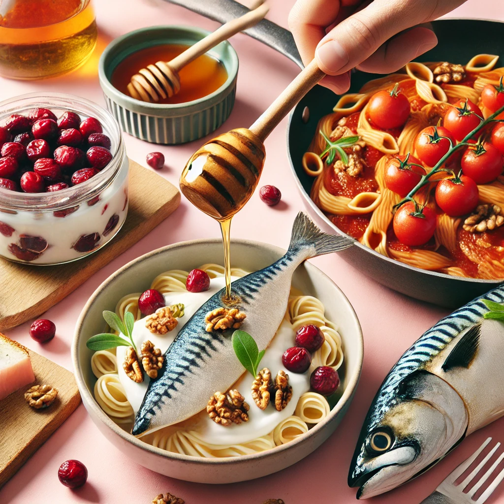 토마토 기반 스텔스 파스타신선한 생선 스테이크가 만나 영양 가득한 점심을 완성합니다.