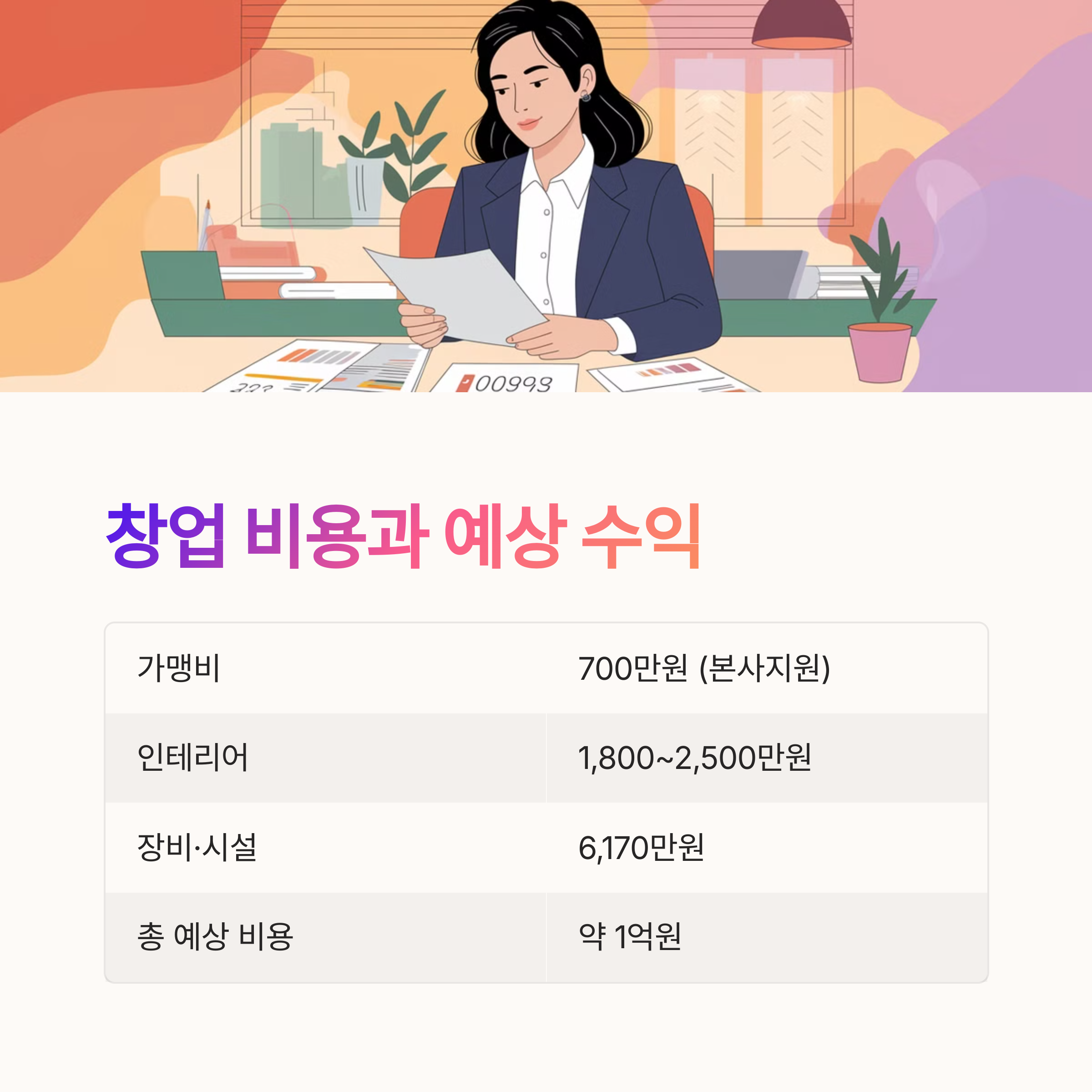 기본적으로 1억 원 정도의 초기 창업 비용이 필요하지만, 대출 지원 및 다양한 옵션이 마련되어 있습니다.