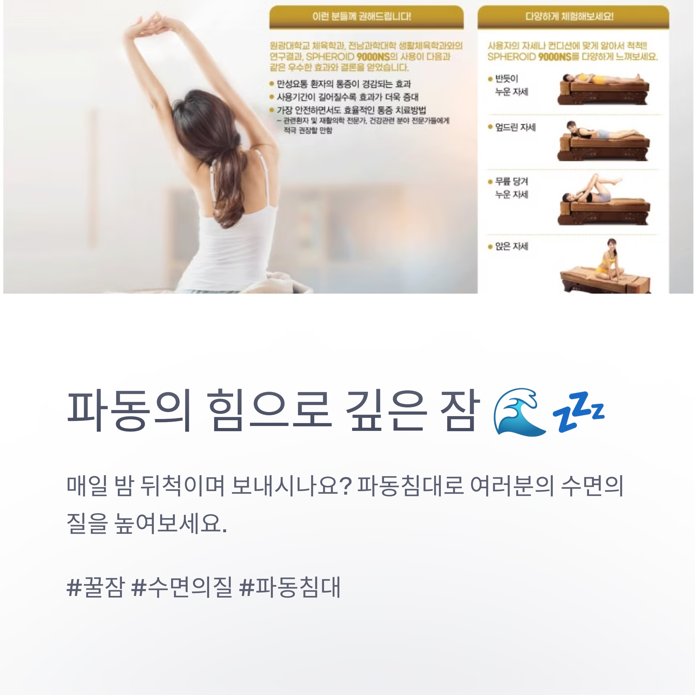 운동 후 뭉친 근육, 혈액순환 문제, 부종까지… 스패로이드 파동침대 하나면 해결됩니다!