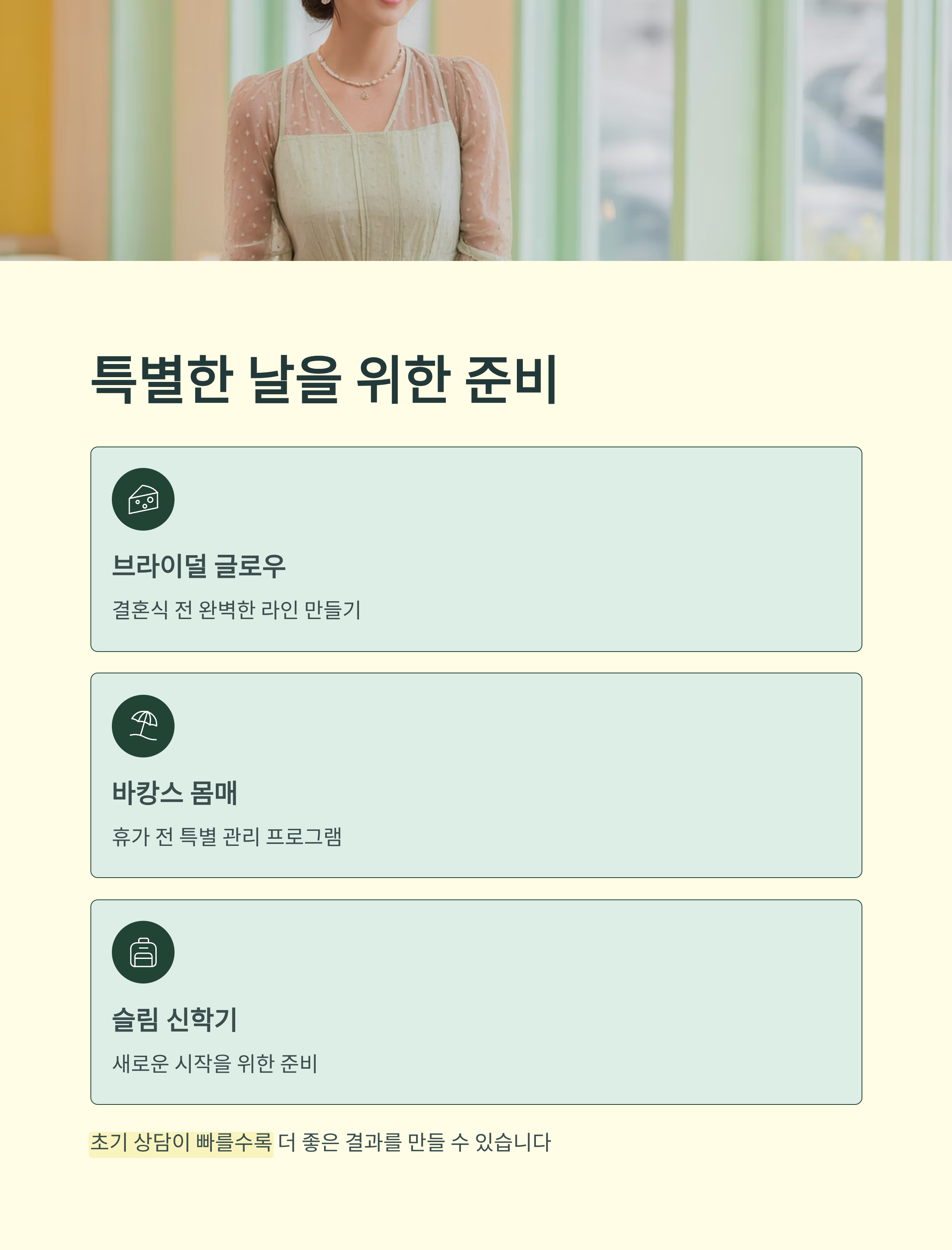 결혼식, 휴가 등 특정 이벤트를 앞두고 있다면 단기 집중형 프로그램이 적합합니다.