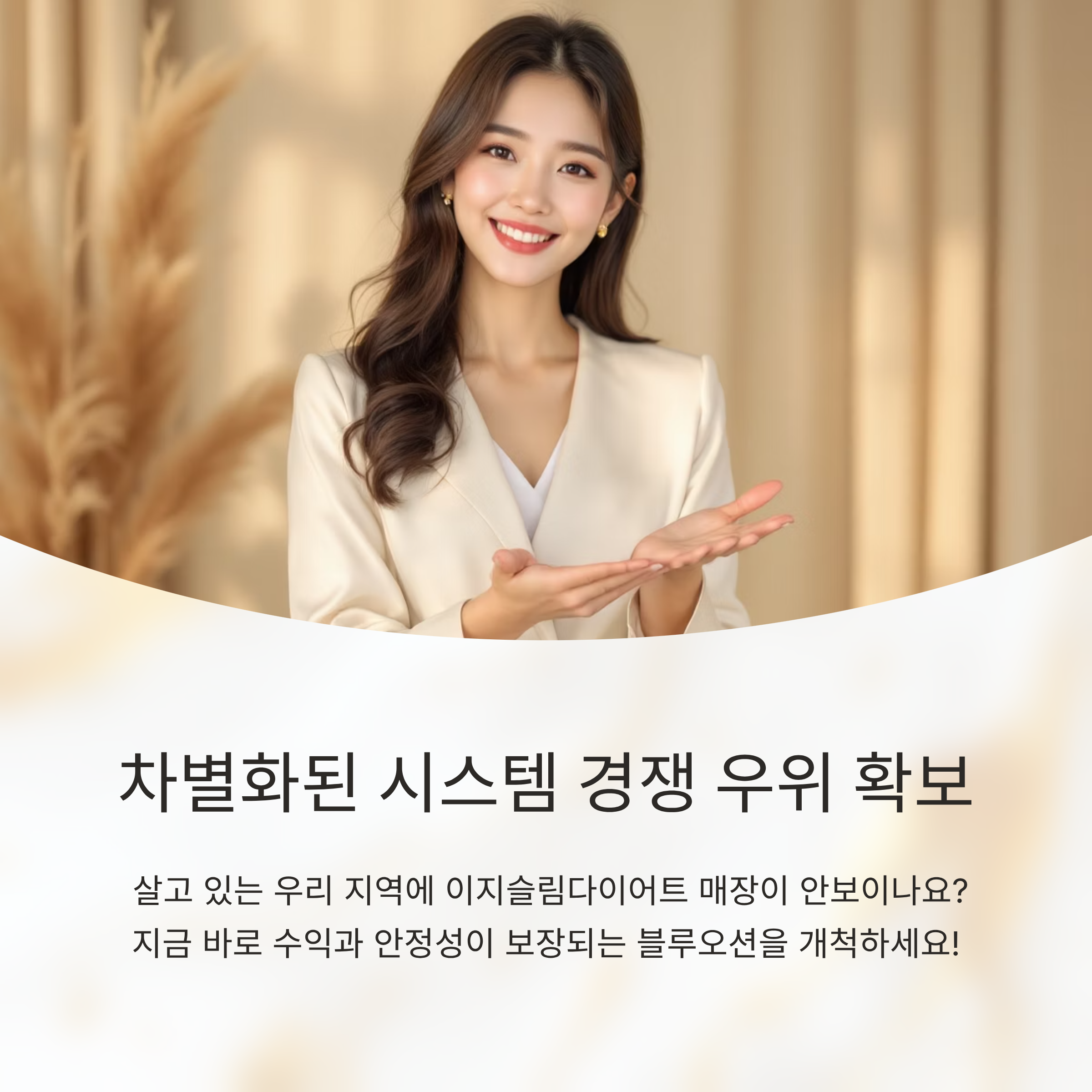 체계적인 시스템은 물론, 소비자 심리를 사로잡는 관리프로그램 설계로 운동, 힐링, 건강, 마사지 같은 니즈가 많은 지역이 이지슬림다이어트 독점운영이 가능한 최고의 입지 지역입니다.