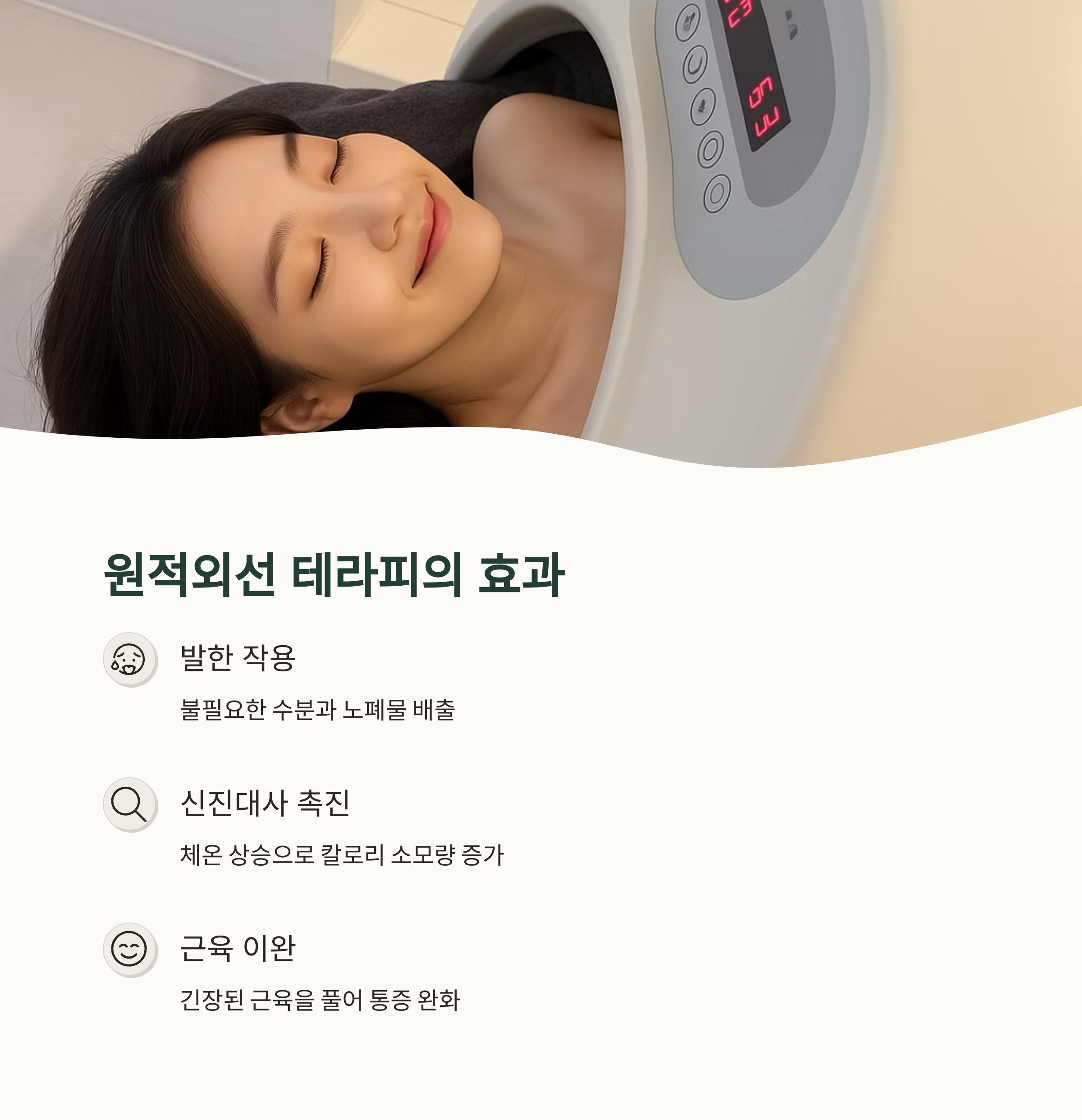 원적외선 테라피는 따뜻하게 몸을 감싸며, 체내 심부까지 열을 전달해주는 힐링 기술입니다.