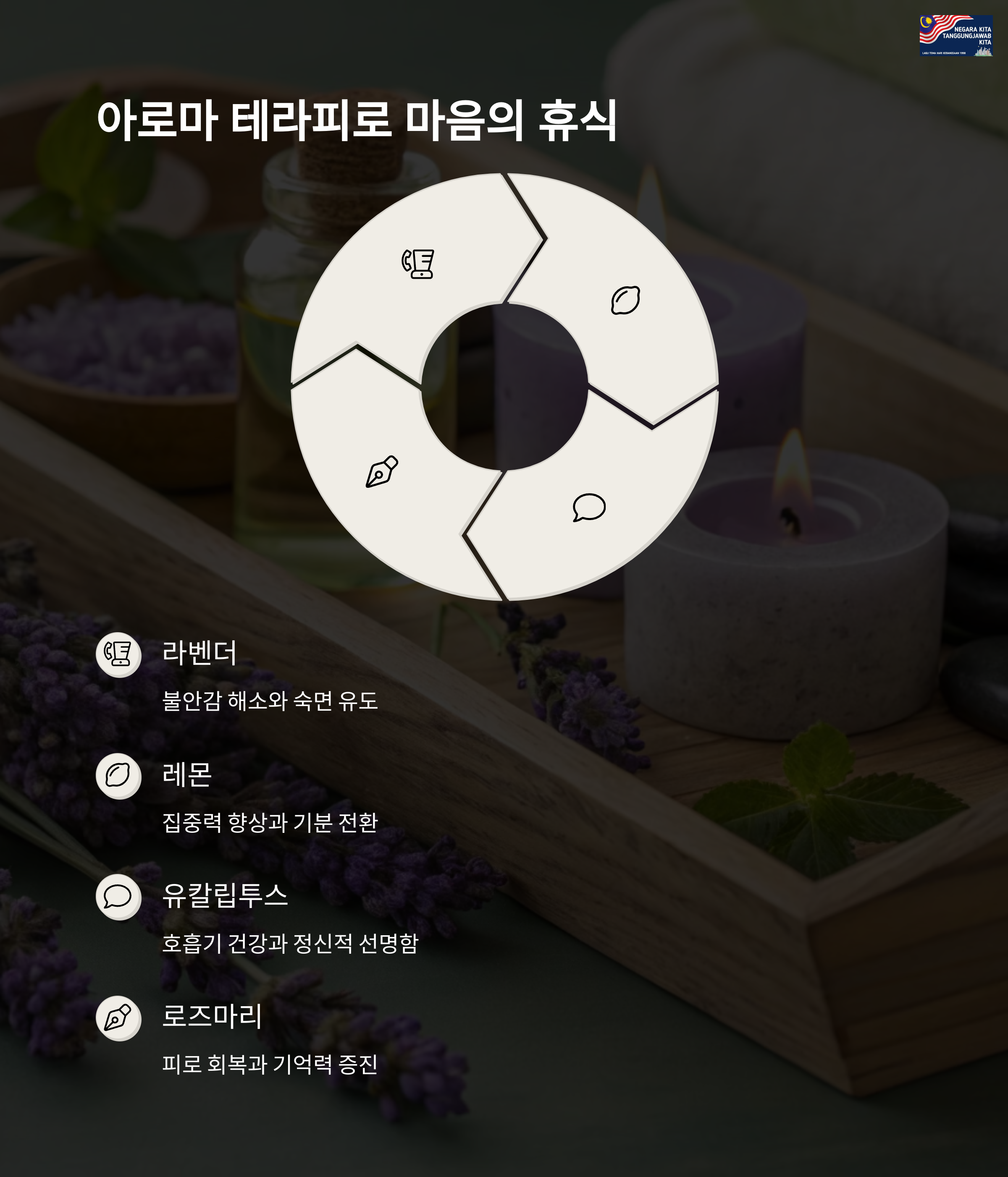 | 천연 아로마 심신 이완 | 감정 안정, 우울감 완화, 숙면 유도 |