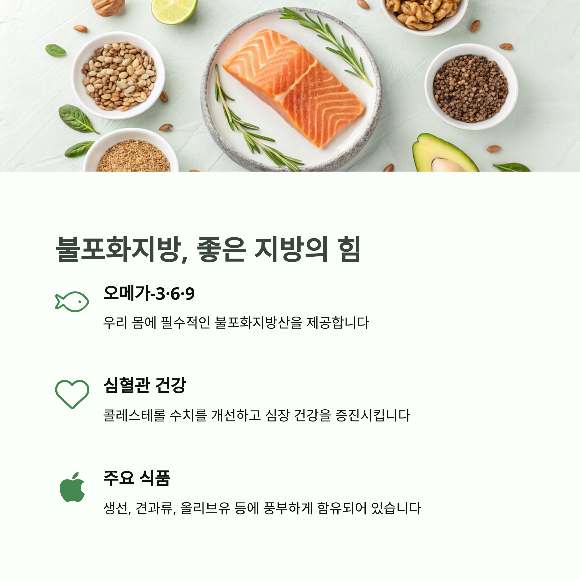 "불포화지방은 매일 조금씩 꾸준히 섭취하는 것이 중요합니다" 💡