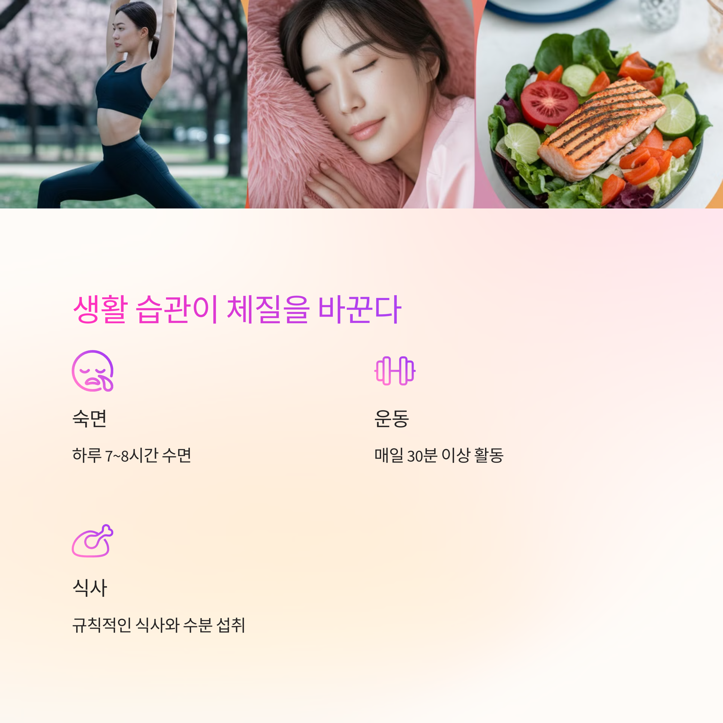 생활 습관만 개선해도 체중 조절이 쉬워지고, 몸이 가벼워지는 것을 느낄 수 있습니다!