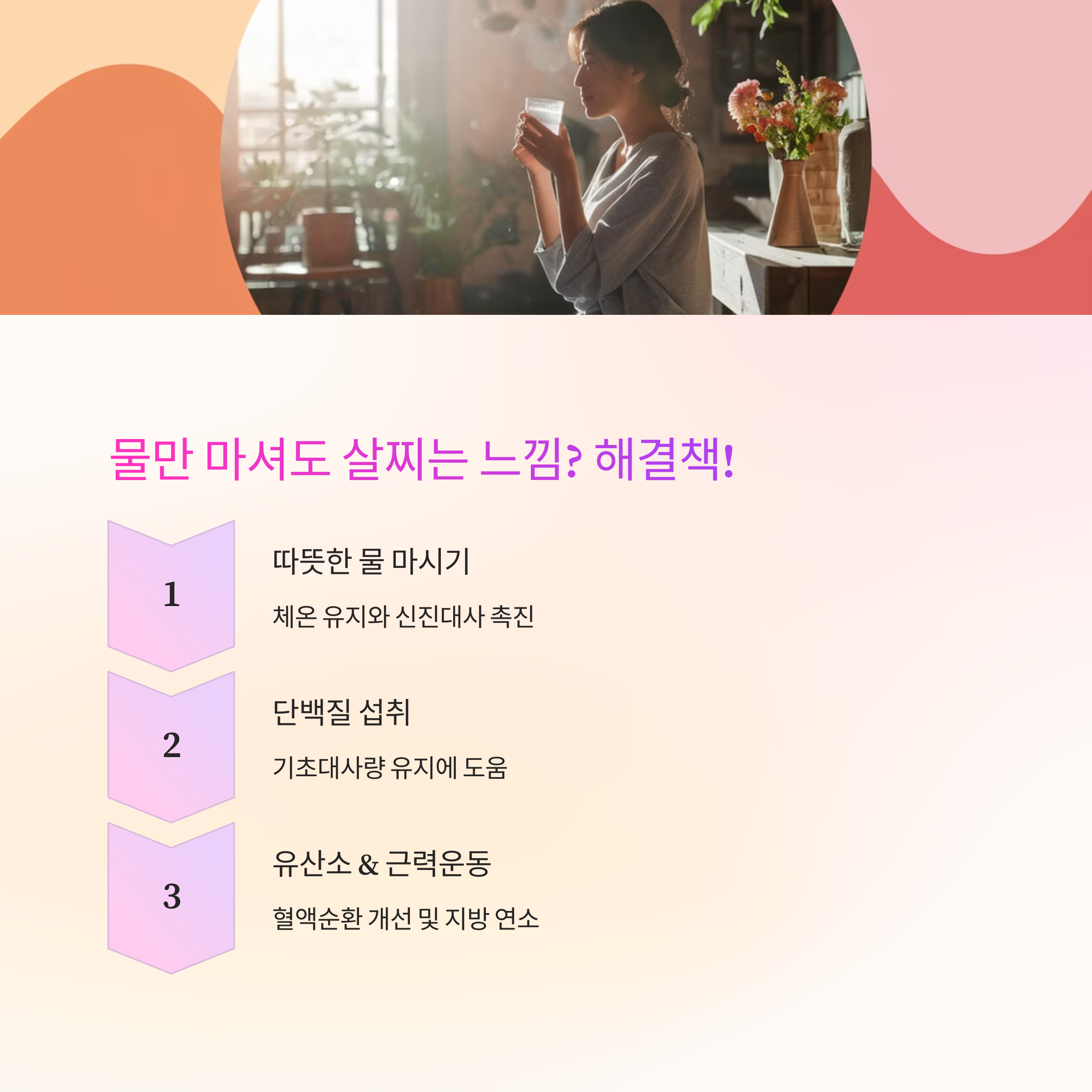 위의 방법들을 꾸준히 실천하면 "물만 마셔도 살이 찌는 느낌"이 점차 사라지고, 몸이 가벼워지는 변화를 경험할 수 있습니다. 💙