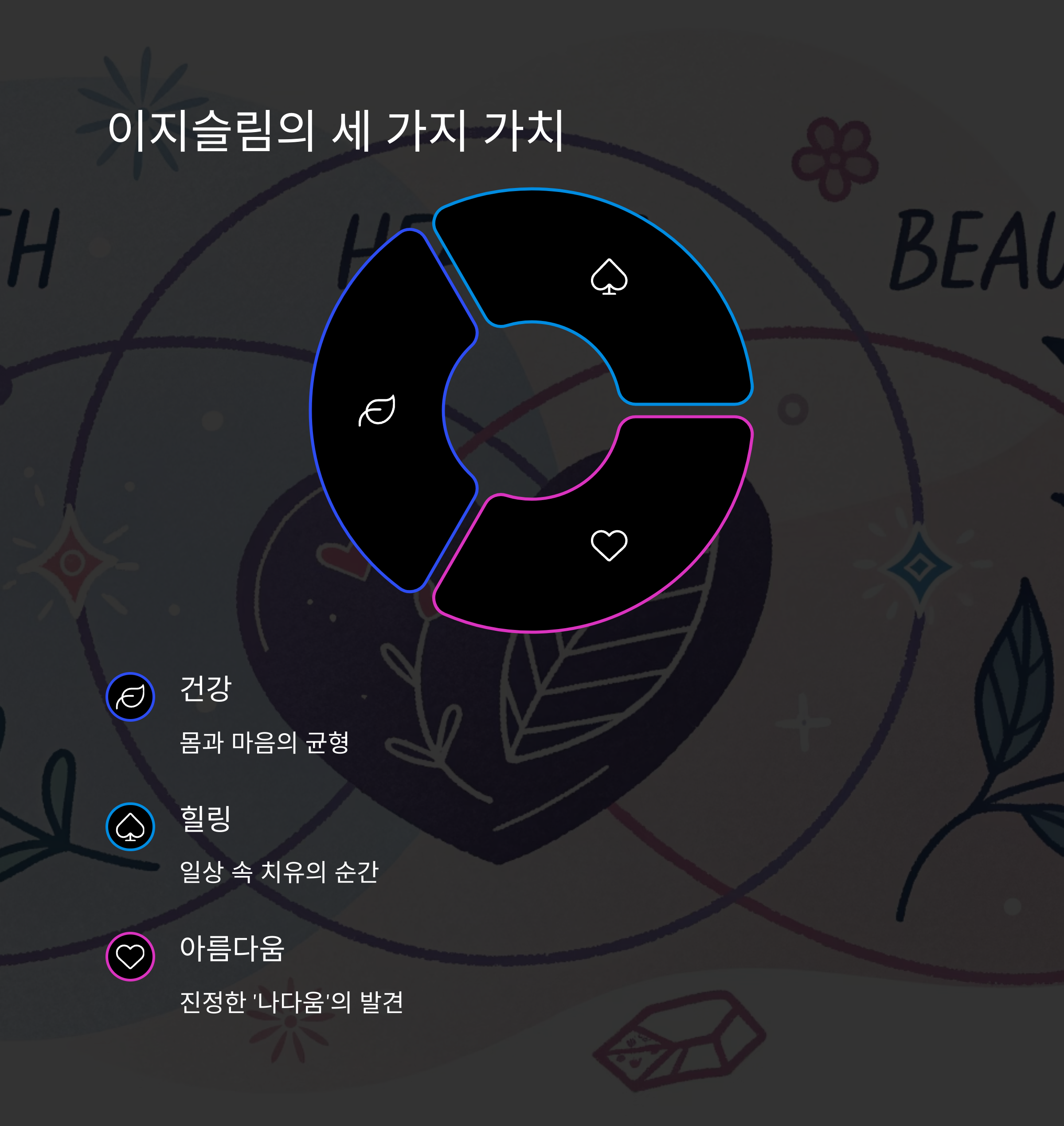 핵심 가치: 건강·힐링·아름다움