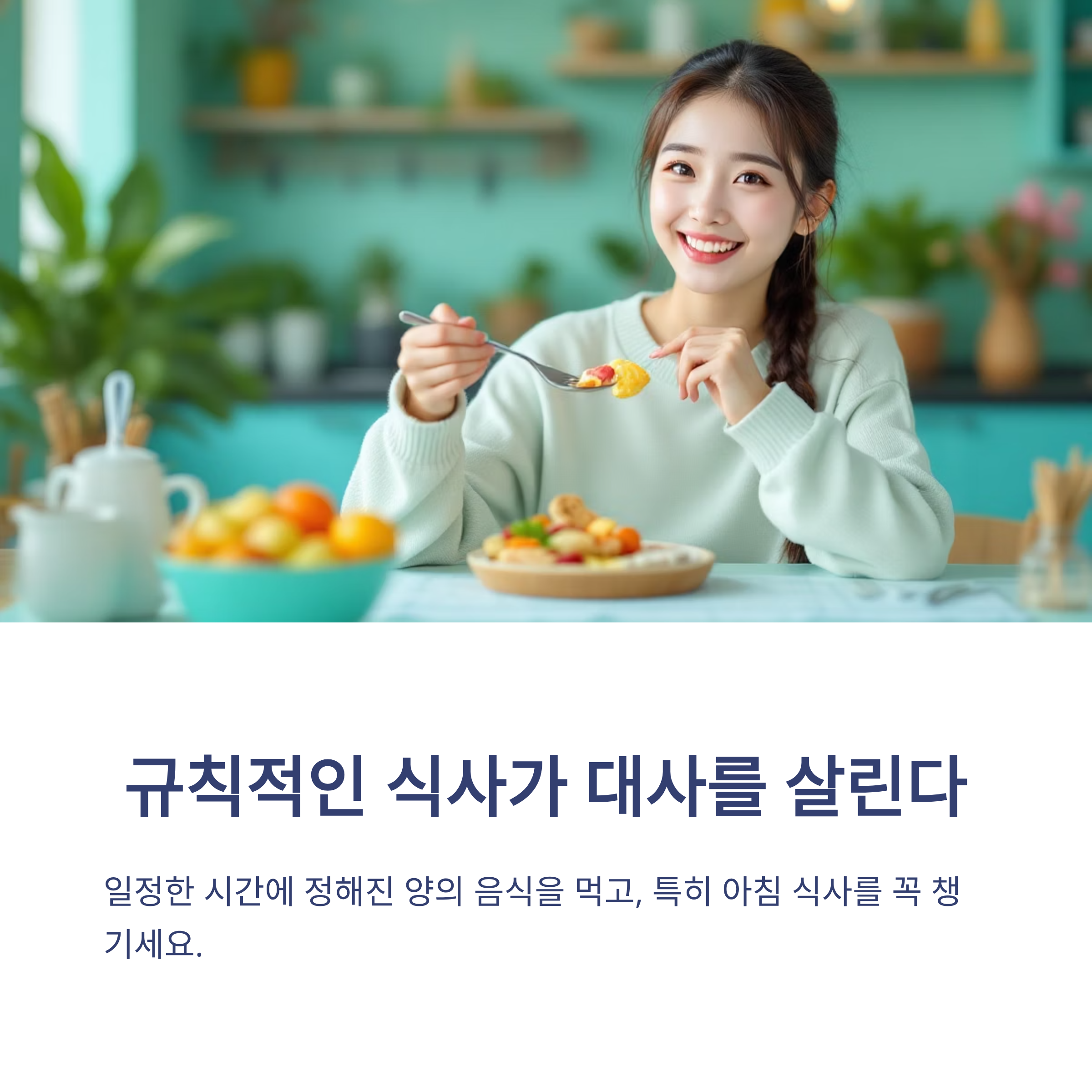 불규칙한 식사 패턴은 몸을 혼란스럽게 만들고 대사 효율을 저하시킵니다. 일정한 시간에 정해진 양의 음식을 먹는 습관만으로도
