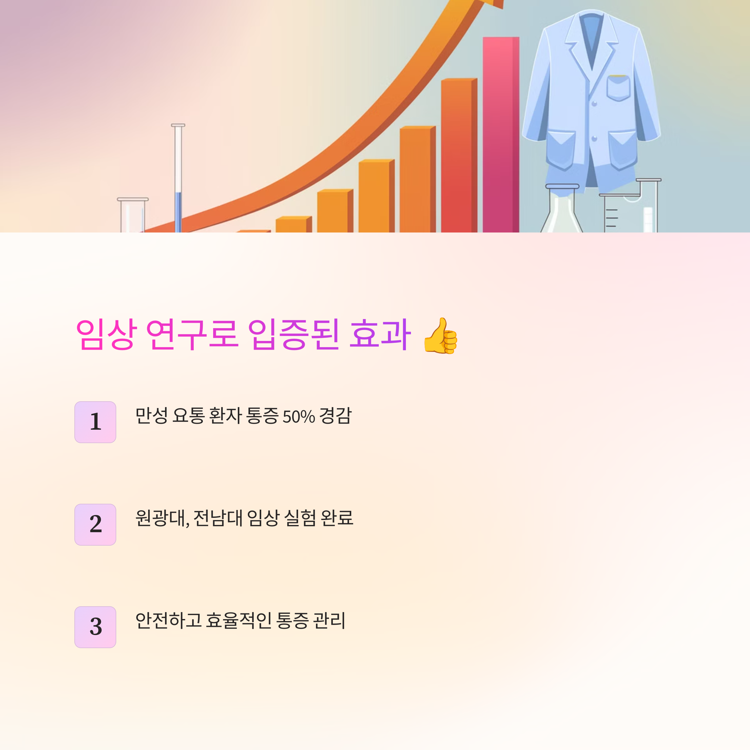| 통증 감소 | 12주 후 VAS 기준 통증 강도 48.83% 감소 |