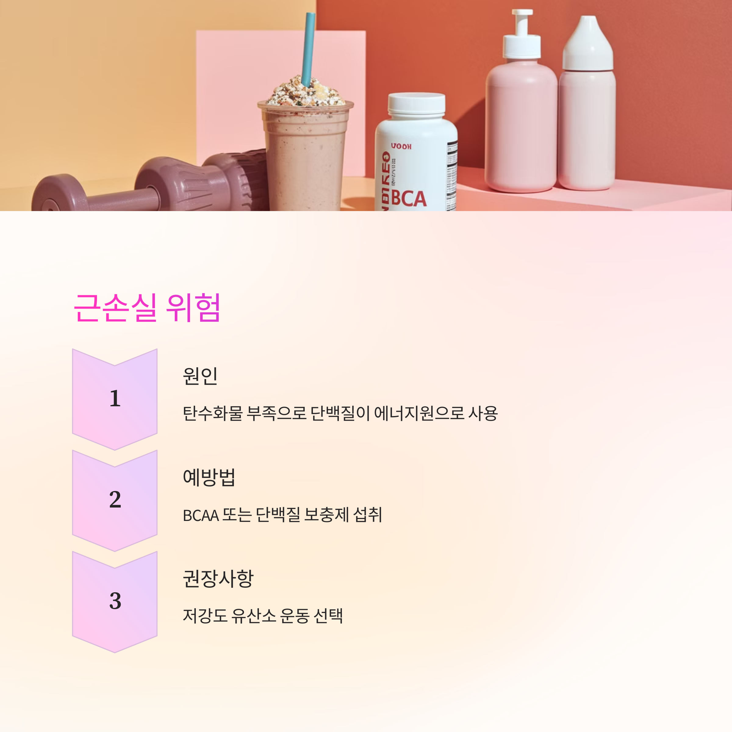 - 운동 전 BCAA(아미노산) 또는 단백질 보충제를 섭취하기