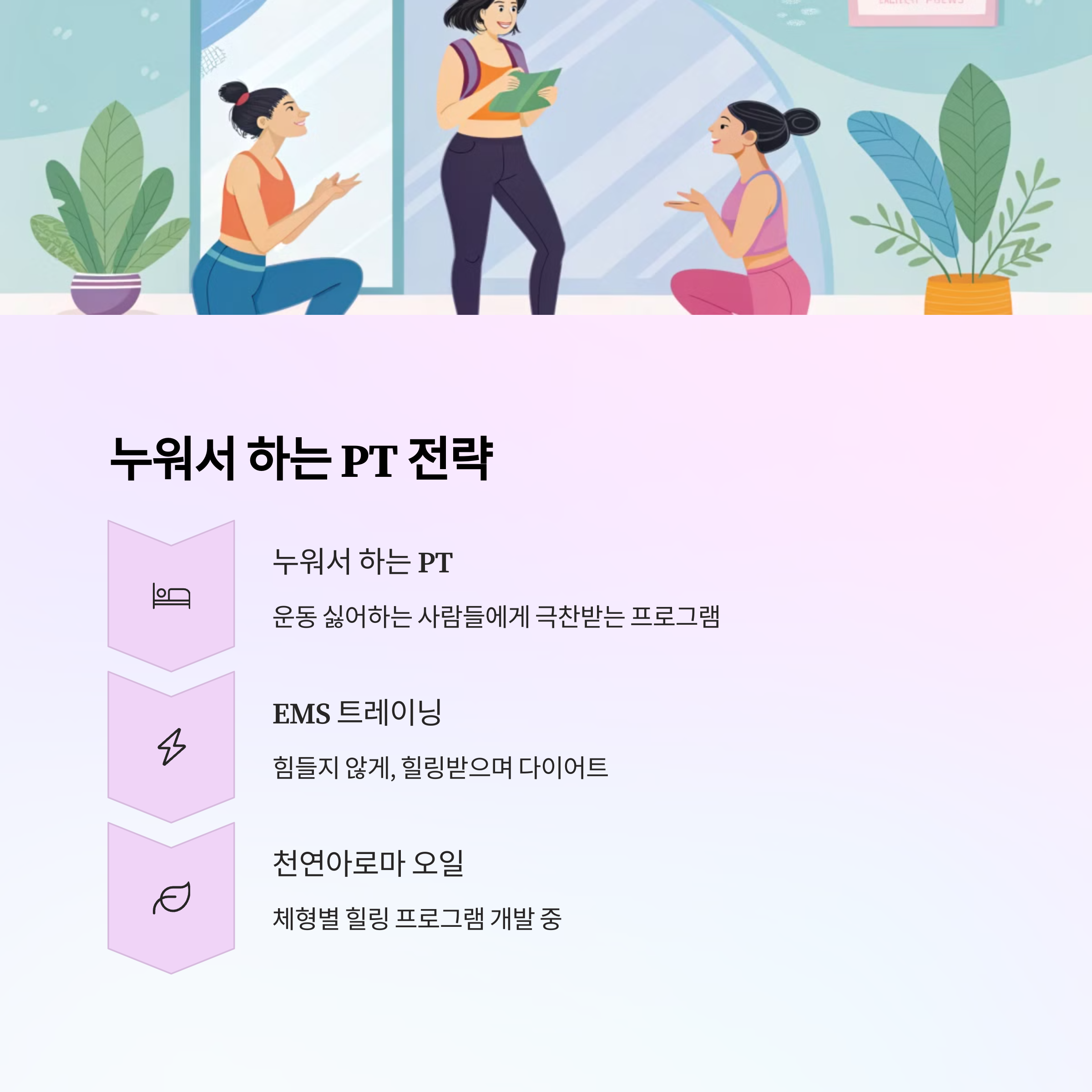 - 운동+힐링+테라피가 결합된 복합적 프로그램 제공 가능
