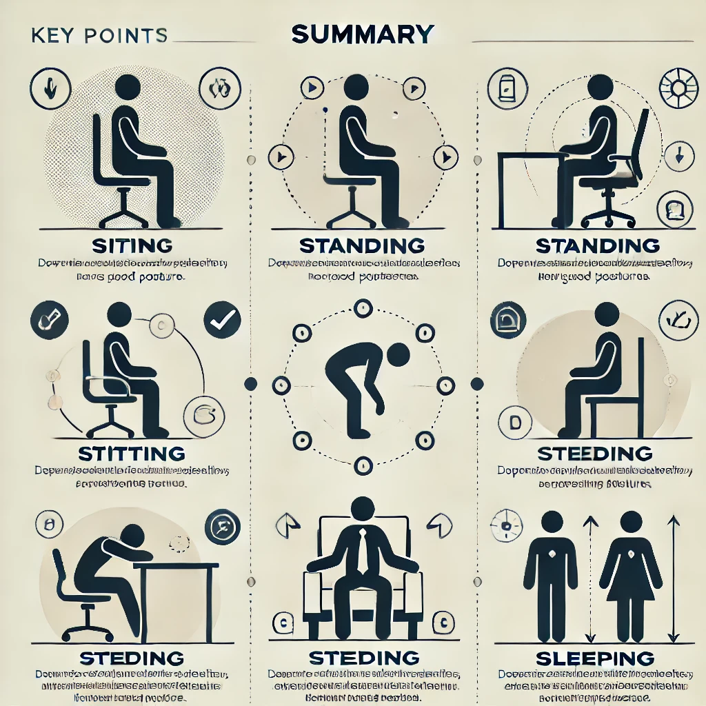 자세는 하루아침에 바뀌지 않지만, 작은 습관을 반복하면 점점 더 바른 자세를 유지할 수 있습니다. 책상 앞에서의 자세, 스마트폰을 보는 습관, 운동을 통한 자세 교정 모두 중요합니다. 올바른 자세를 유지하면 단순히 허리 건강뿐만 아니라 소화 기능, 집중력, 피로 회복에도 긍정적인 영향을 미칩니다. 지금부터라도 자신의 자세를 점검하고, 건강한 삶을 위한 바른 습관을 만들어보세요!