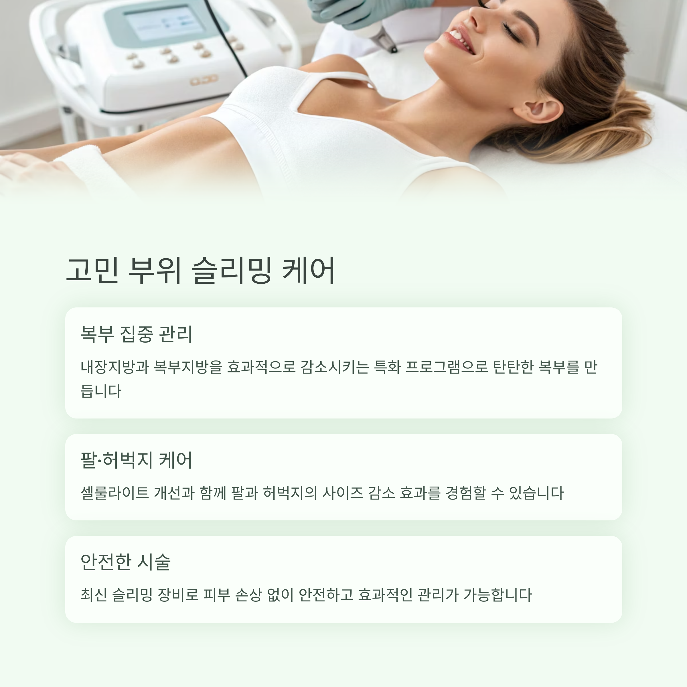 "복부, 허벅지, 팔뚝... 원하는 부위만 골라 관리하세요."