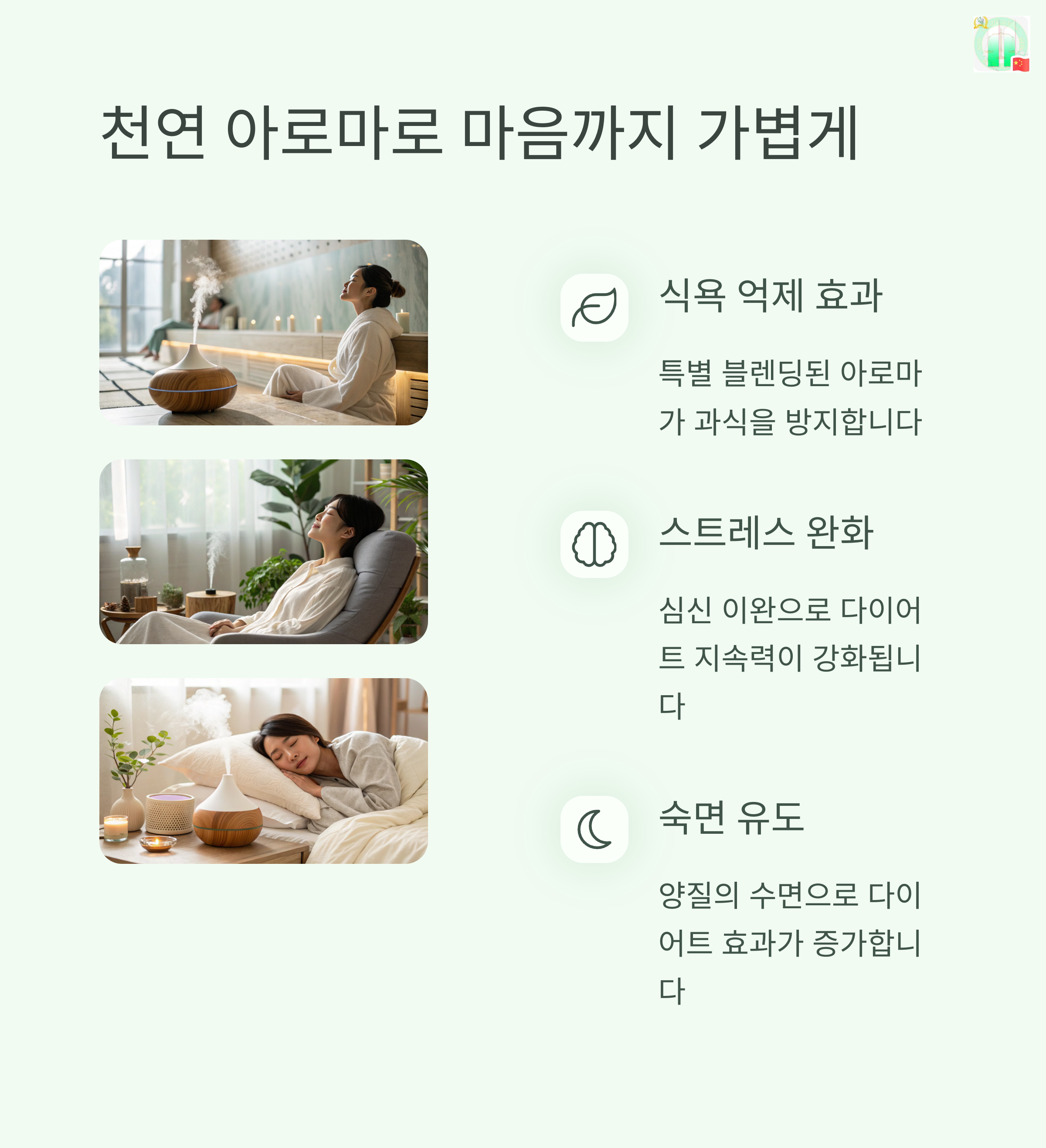 이지슬림은 다이어트 중 스트레스를 줄이기 위해 천연 아로마 테라피를 병행합니다.