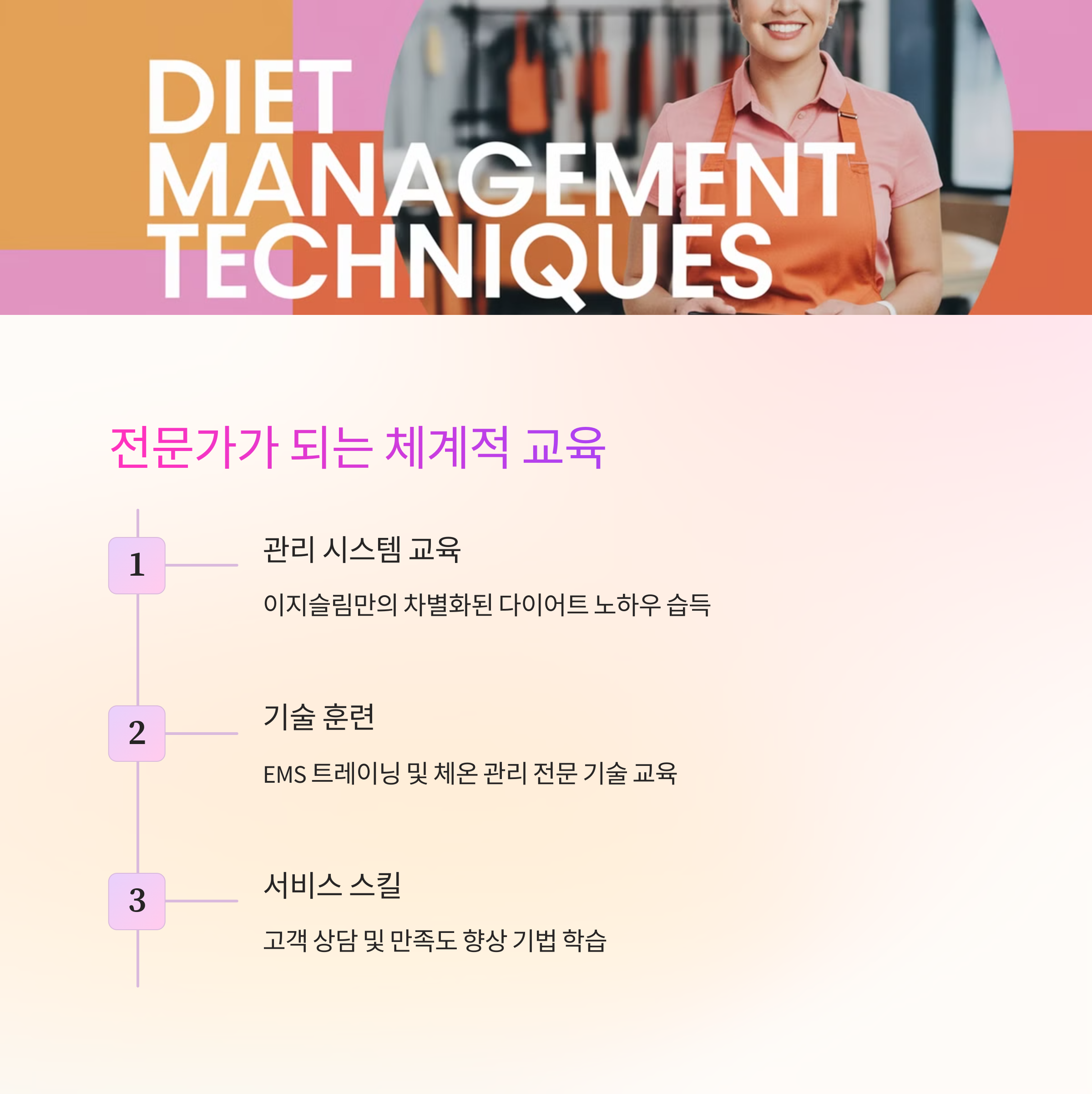 이지슬림 본사의 체계적인 지원과 함께 창업의 첫걸음을 내디뎌보세요.