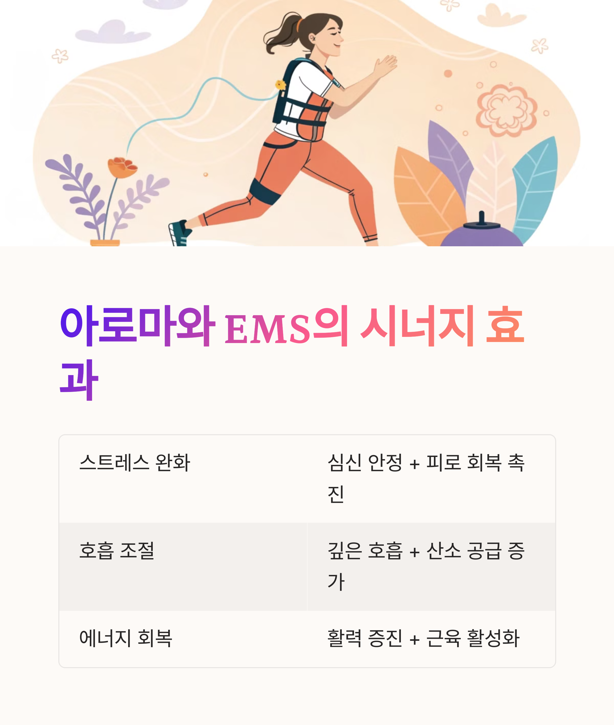 | 항목 | 아로마 테라피 효과 | EMS 운동 효과 |
