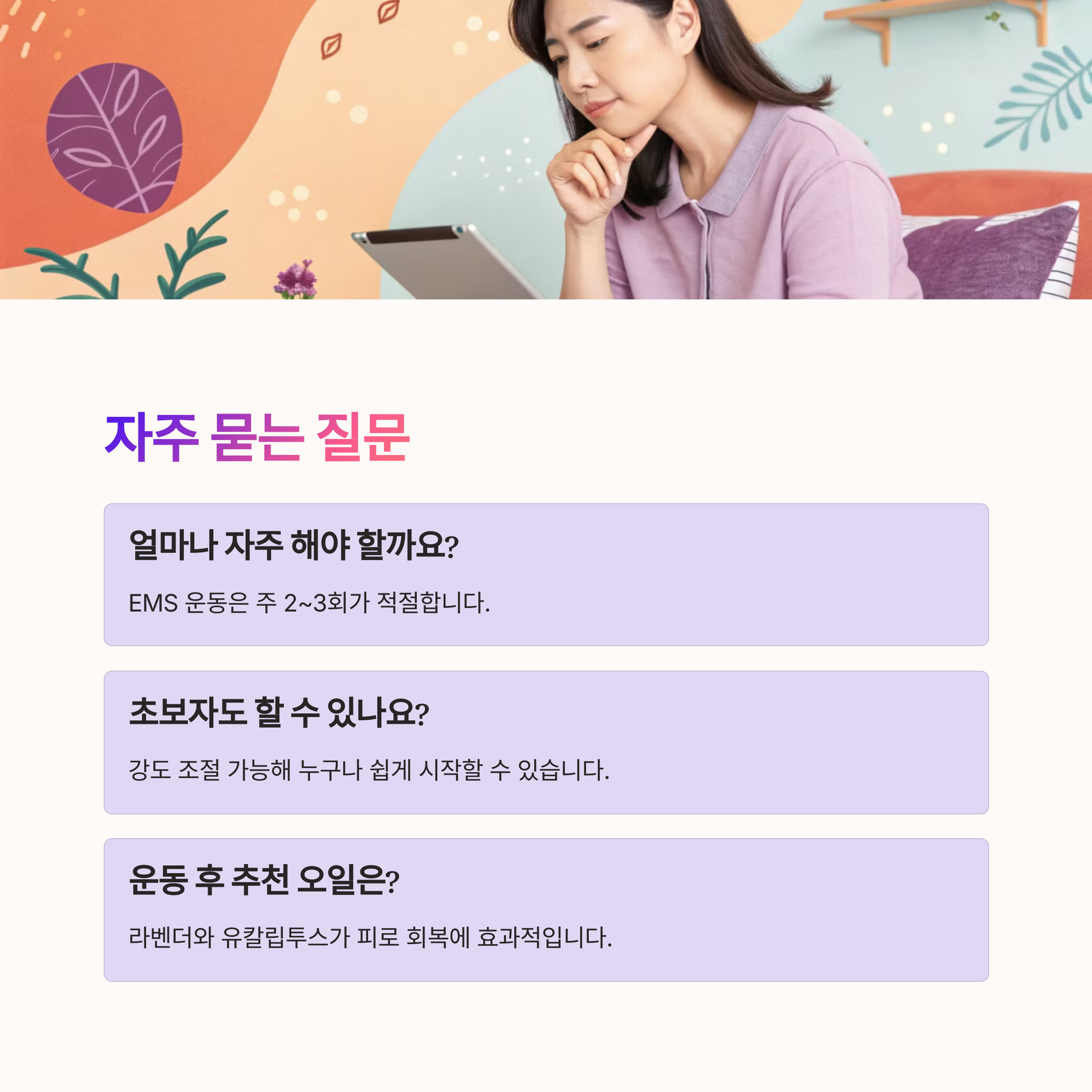 아로마 & EMS 운동, 이렇게 활용하세요!