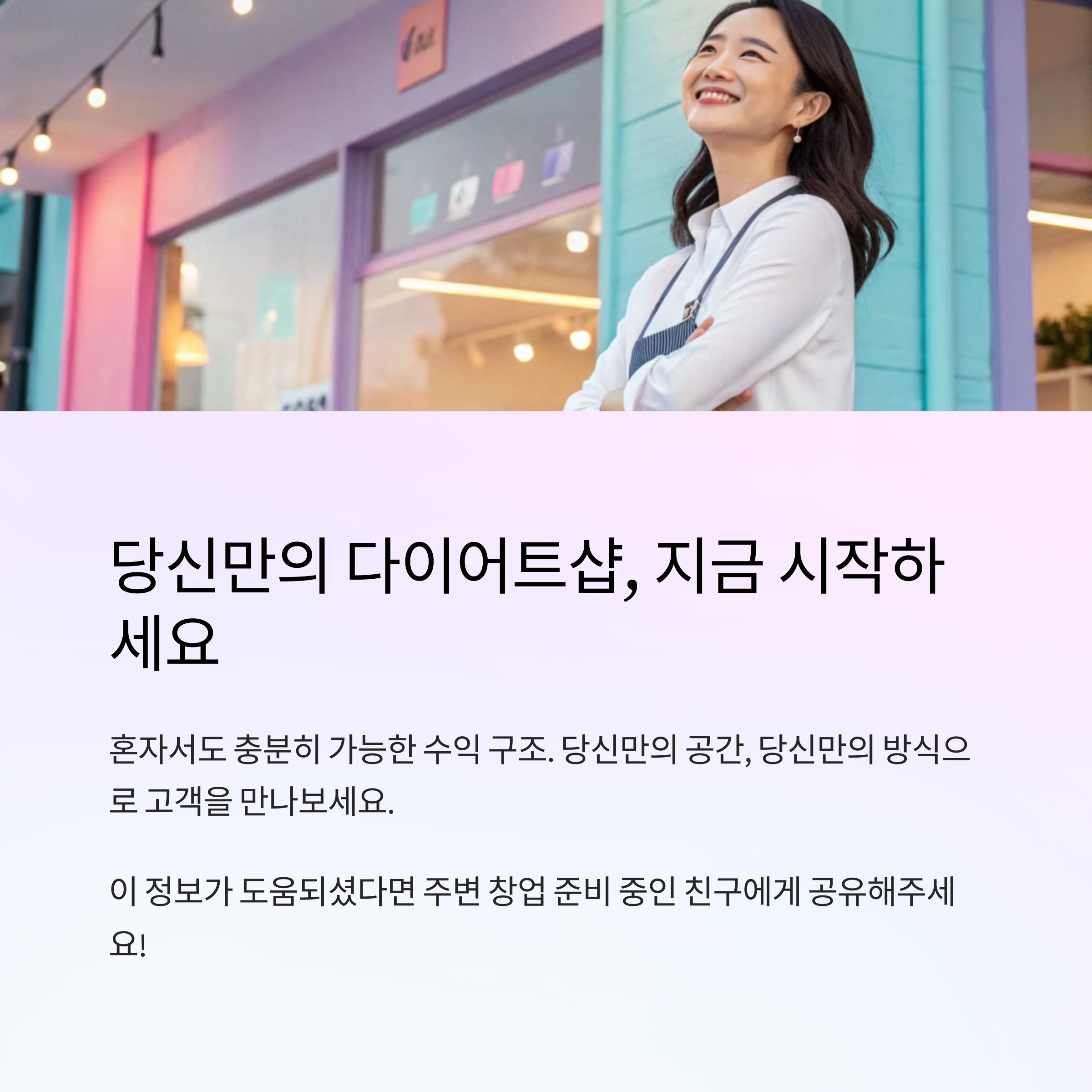 요즘 1인 창업, 많이들 고민하시죠? 하지만 다이어트샵이라면 이야기 달라집니다. 혼자서도 충분히, 월 500만 원의 수익을 만드는 비결을 알려드릴게요.