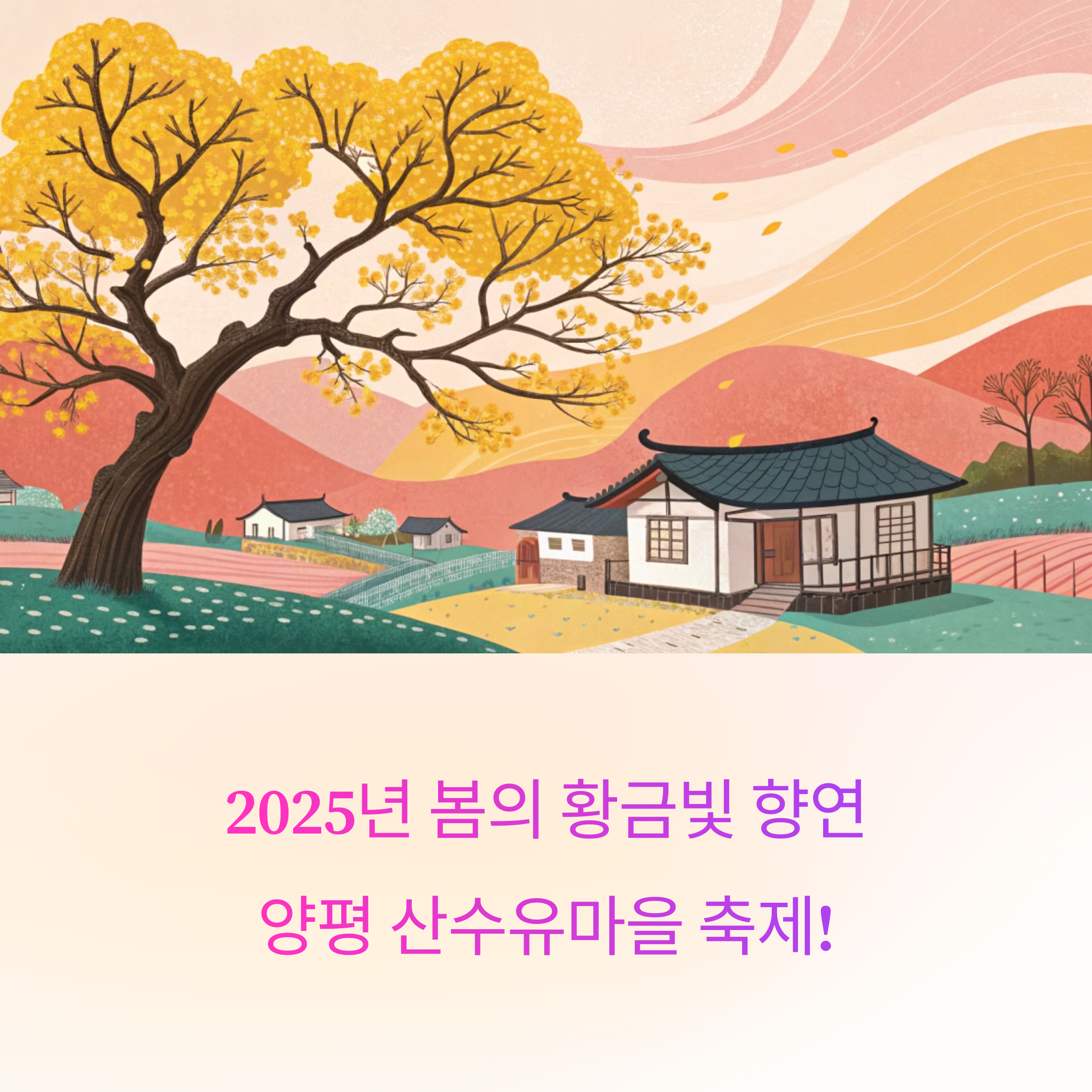매년 봄이 되면 유난히 기대되는 축제가 있어요. 바로 양평 산수유마을축제인데요. 올해 2025년에는 3월 29일(토)부터 30일(일)까지 단 이틀간만 진행된다고 하니 더욱 아쉬움과 설렘이 교차합니다. 내리 마을의 7,000여 그루 산수유나무 아래에서 가족, 연인, 친구들과 자연을 즐기며 봄의 기운을 만끽해보는 건 어떨까요?